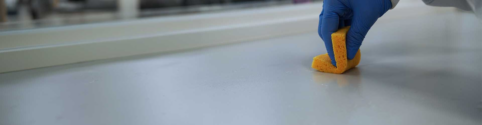 Sani-Sponge Éponge polyuréthane avec zone d'écriture et gantsÉponge polyuréthane avec zone d'écriture et gants